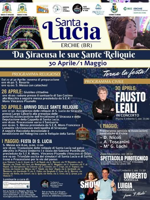 Ecco il programma dei festeggiamenti in onore di Santa Lucia.