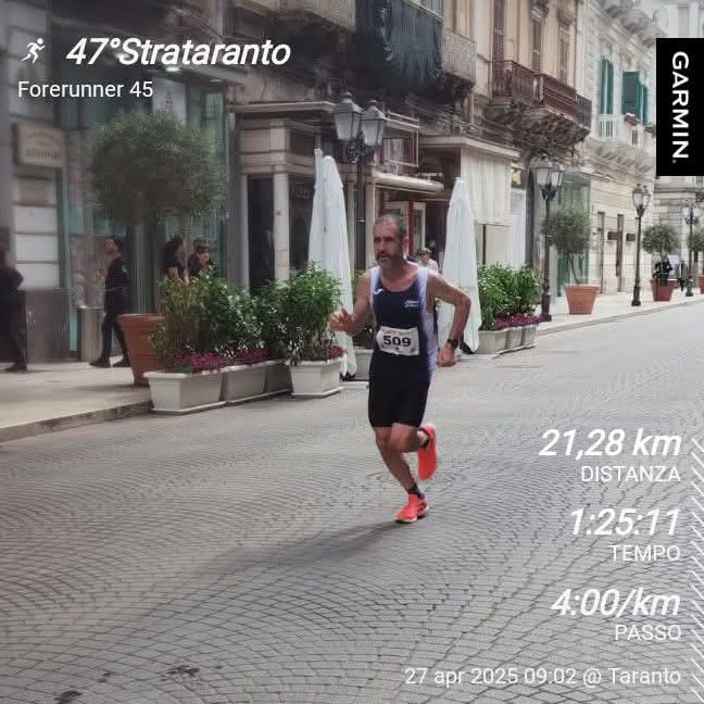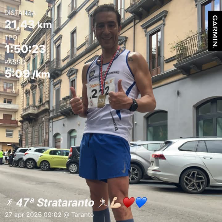 Buona anche la prova di Giovanni Doria (Gruppo Sportivo III Regione Aerea Bari), che si è classificato al 28° nella propria categoria (SM50) e al 204° posto assoluto con il tempo di 1h50’37”.