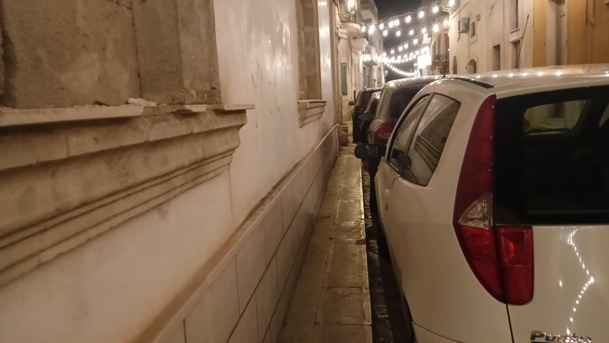 «Manduria, via GL Marugj, una delle strade più belle del centro storico, trasformata in un’area di parcheggio senza regole. Chi ha casa li, deve sperare che non ci siano macchine a bloccare la porta, perché solo così potrà uscire o si potrà rientrare a casa. I pedoni, poi, sembrano birilli di bowling che cercano di schivare le macchine: nessun marciapiede, nessun paletto di delimitazione per transito pedonale. Nessun rispetto per i tanti anziani e disabili che abitano li. Che semmai (e speriamo mai) avessero bisogno di aiuto, non potrebbero essere raggiunti neanche dai soccorritori. Vergogna! Ci tengo a dire che prima di scrivere questo post ho segnalato più volte la problematica ai vigili e ad alcuni consiglieri comunali. Nulla di fatto (forse non sono simpatico a qualcuno: me ne farò una ragione). Sperate solo che non succeda mai nulla (liti, problemi di emergenza non gestibili, incidenti perchè manca qualsiasi possibilità di camminamento per i pedoni, ecc...).