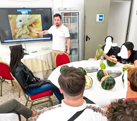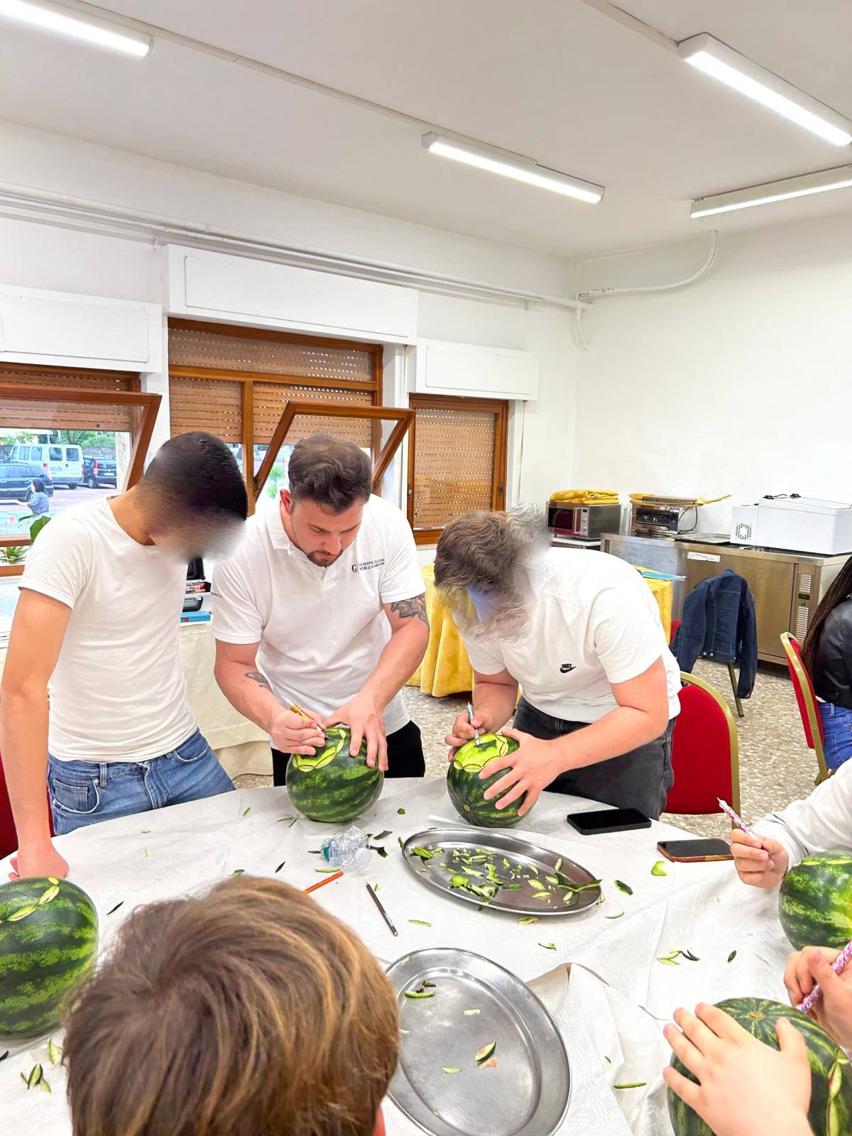 L’iniziativa è inserita nel nell’ambito del corso pomeridiano di 30 ore sul tema “L’intaglio della frutta”, tenuto appunto da Giuseppe Guida.
