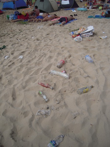 Il popolo della notte è ancora lì in massima parte, sotto le tende a smaltire i bagordi, ma cominciano ad arrivare persone che - pur non avendo dormito fino alle 3.30 della mattina perché un megafono con altoparlante dalla spiaggia portava musica e schiamazzi oltre la litoranea – vorrebbero usufruire anch’esse di questo tratto di spiaggia per trascorrere una giornata al mare.