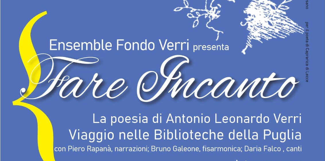 Il liceo De Sanctis-Galilei di Manduria ospiterà oggi, alle ore 10:30, presso il teatro dell’istituto, l’undicesima tappa del tour “Fare Incanto”, concerto-recital dedicato alla figura e all’opera di Antonio Leonardo Verri. L’iniziativa, patrocinata dal Consiglio Regionale della Puglia - Sezione Biblioteca e Comunicazione Istituzionale “Teca del Mediterraneo” e organizzata dall’Associazione Culturale Fondo Verri in collaborazione con il Comune di Manduria e il Liceo, vedrà coinvolti circa 180 studenti appartenenti a diversi percorsi di potenziamento e progettualità extracurricolari legate all’animazione culturale.
