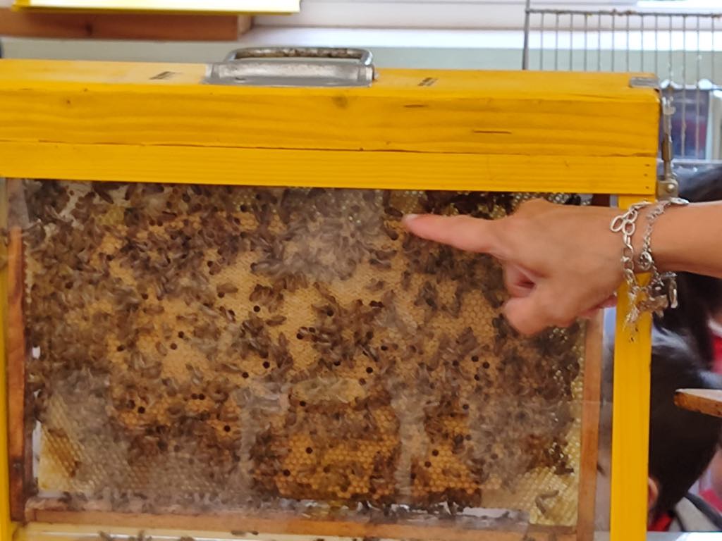 Durante la visita, i piccoli hanno potuto osservare da vicino un'arnia didattica, ovvero un contenitore in vetro, simile a un’ampolla, che ha permesso loro di vedere “le api in attività” in tutta sicurezza