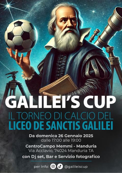 Il “Galilei’s Cup” nasce dall’idea di Luca Mandurino, Cristiano Buccoliero, Angelica Libardi, Giovanni Decataldo e Manuel Vozza, studenti del liceo De Sanctis Galilei di Manduria, in collaborazione con i rappresentanti dell’istituto Luigi Einaudi e Del Prete Falcone di Sava, per offrire ai ragazzi l’opportunità di cimentarsi un torneo di calcio, spalmato in 10 domeniche.