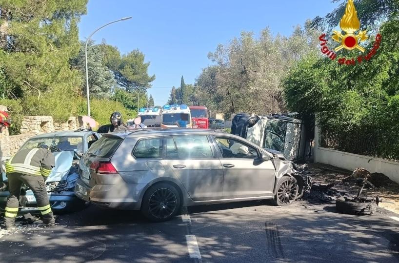 Nuovo incidente stradale: impatto fra tre auto lungo la strada che porta a San Vito dei Normanni. Una si è ribaltata su di un lato.