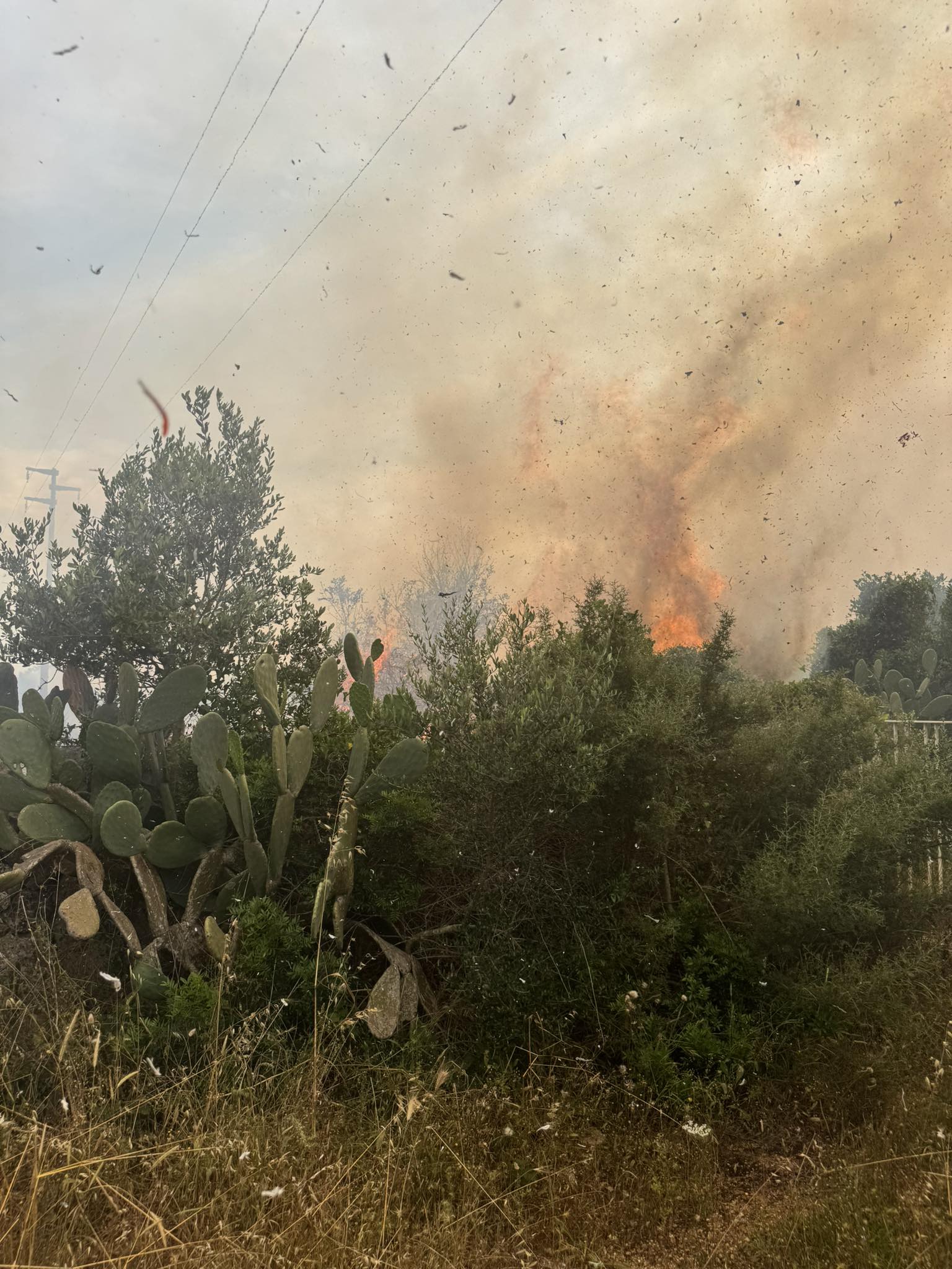 Un incendio ha interessato ieri la proprietà di Ferdinando Arnò in contrada Monte di Rena, una zona fra Manduria e Avetrana.