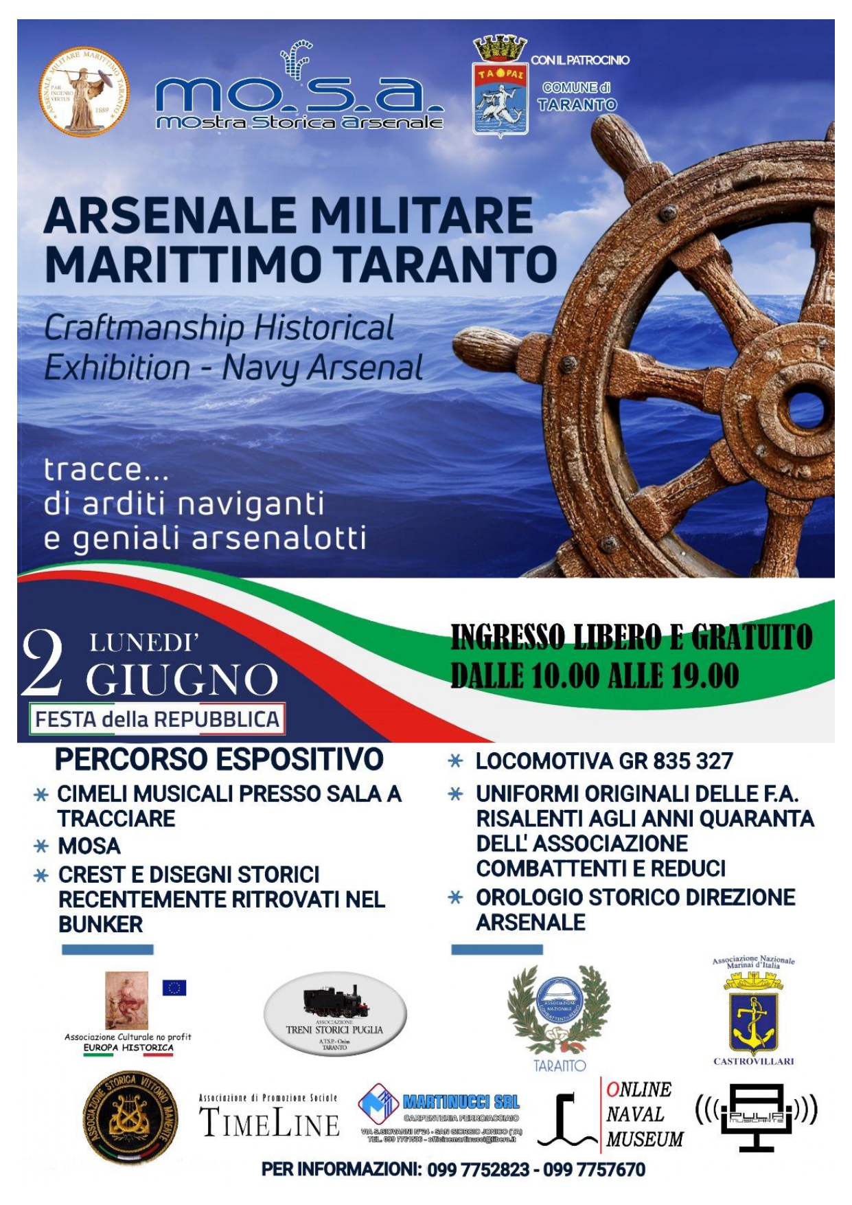 Lunedì 2 giugno, in occasione della Festa della Repubblica, l’Arsenale Militare Marittimo di Taranto aprirà le sue porte per una straordinaria esposizione storica dedicata all’artigianato e alle tradizioni navali della città dei due mari.
