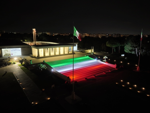 Questi volti dei “Caduti Oltremare” sono proiettati, nelle ore serali, sulle parti frontali del Sacrario, arricchendo l’illuminazione notturna che irradia il “Tricolore”.