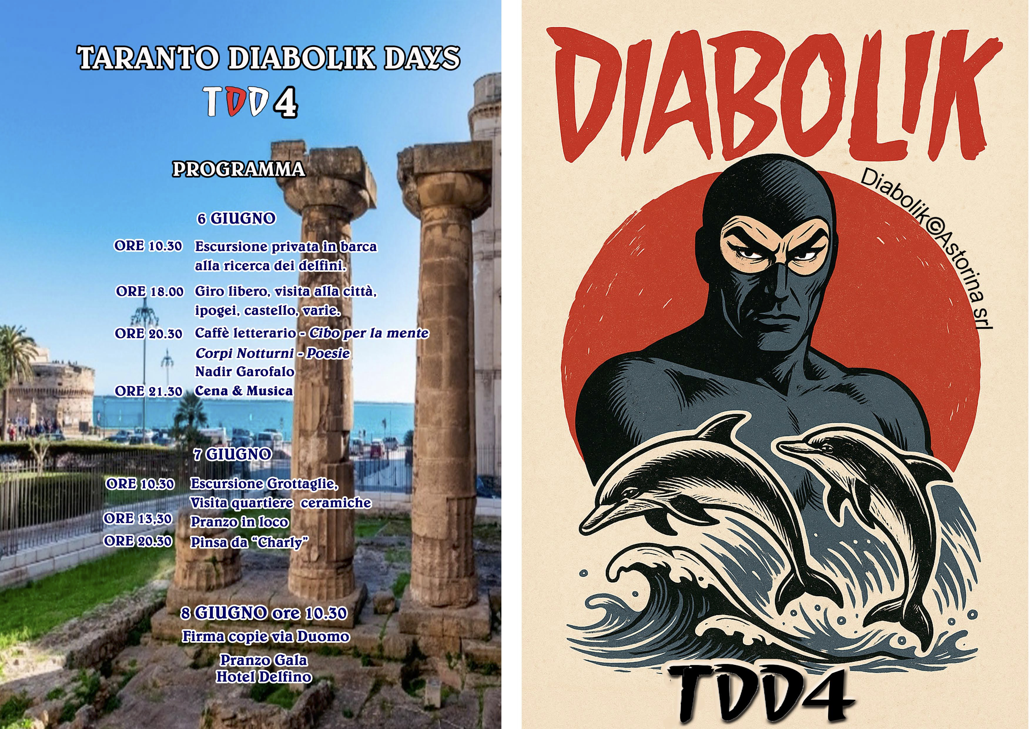 Torna anche quest’anno l’appuntamento per tutti i fan del fumetto creato dalle sorelle Giussani. Nelle precedenti edizioni, organizzate come sempre da Vladimiro Garofalo, il Taranto Diabolik Days ha visto la partecipazione di numerosi collezionisti provenienti da tutta Italia, sia presso il castello Aragonese, che presso la galleria comunale, con mostre riguardanti la storia del fumetto, reperti storici, esposizione di albi originali.
