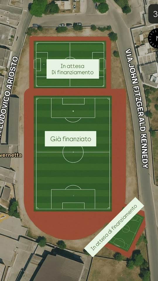 «Gli interventi riguarderanno il blocco spogliatoi del lato via Mare, il rifacimento del campo di calcio a 5 e la realizzazione di un campo calcio 8 nel lato della piazzetta Unicef.