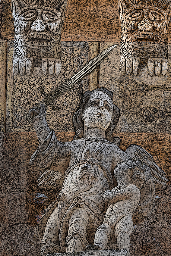 Le Photomorfosi di questa particolare serie sono dunque fatte con gli scatti realizzati in loco e successivamente manipolati al computer. Esse rappresentano, o meglio, questo è il mio intento, l’evoluzione architettonica degli edifici che sono uno dei più pregiati simboli di Manduria. La chiesa Madonna del Rosario, la casa di via Maggi, la chiesa di San Leonardo o il Museo Civico, sono soltanto alcuni esempi di questo percorso creativo.
