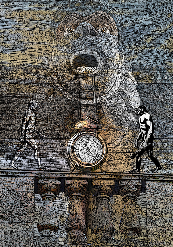 In ogni opera troviamo delle figure che simboleggiano l'evoluzione umana che, però, in questo caso, non rappresentano l'evoluzione dell'uomo bensì quella dell'architettura urbana. Ad ogni opera è affiancata una scheda tecnica con i dati delle singole fotografie che la compongono. Ognuno può così ricercare l’ubicazione fisica dell'edificio rappresentato. Uno stimolo a riscoprire quanto ancora possono offrire gli angoli, gli anfratti e le vie cittadine».