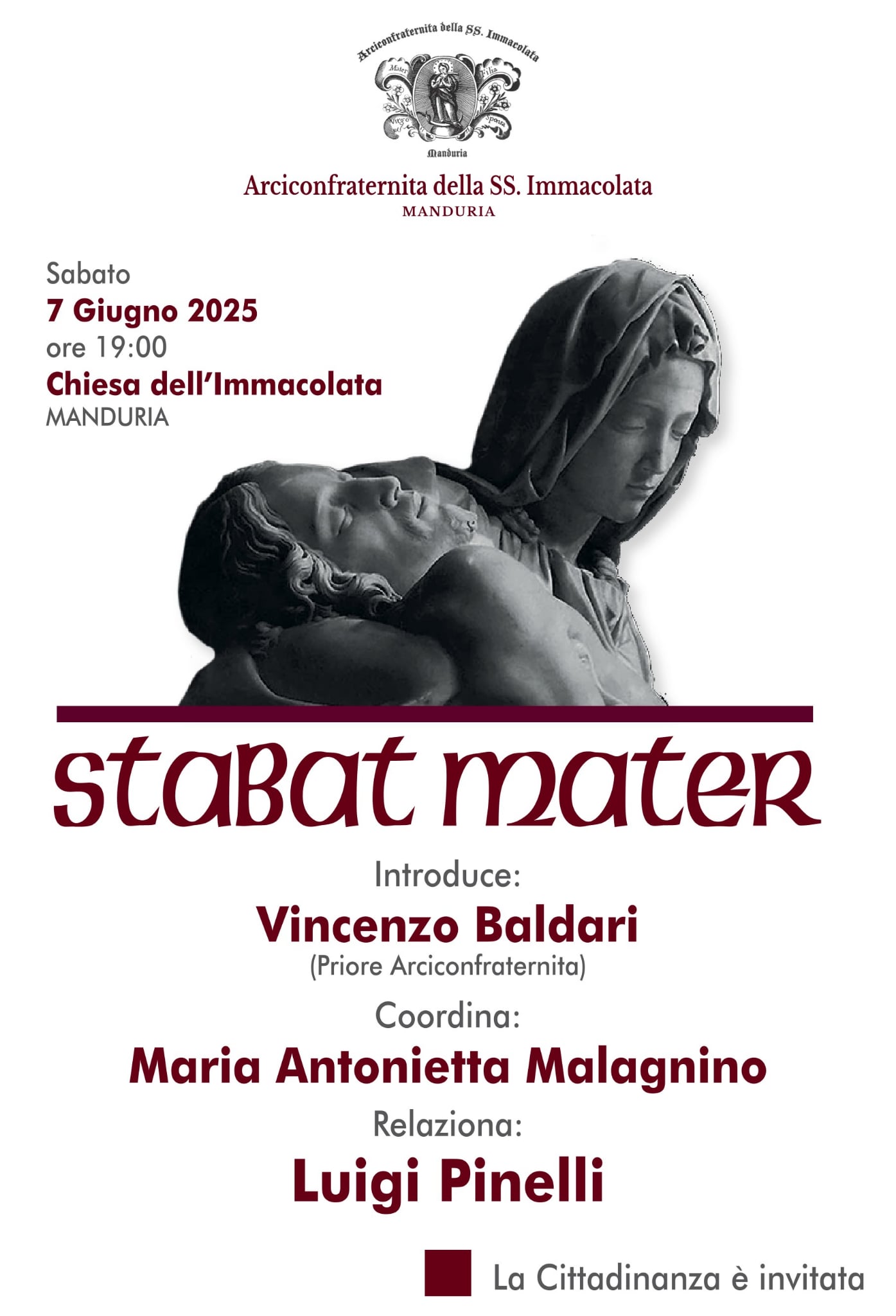 Sabato 7 giugno, alle ore 19, la chiesa dell’Immacolata di Manduria farà da cornice ad un evento culturale.