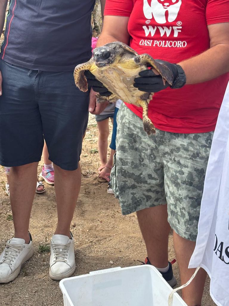 Il momento clou della giornata è stato senza dubbio la liberazione di una tartaruga Caretta Caretta nelle acque della Riserva