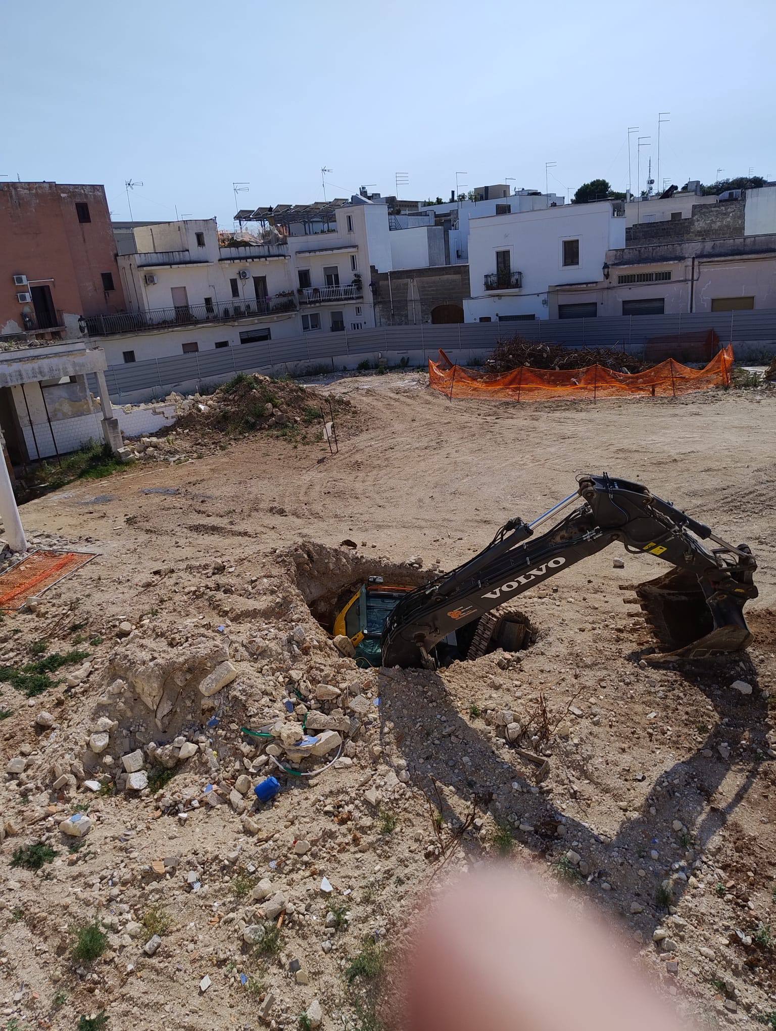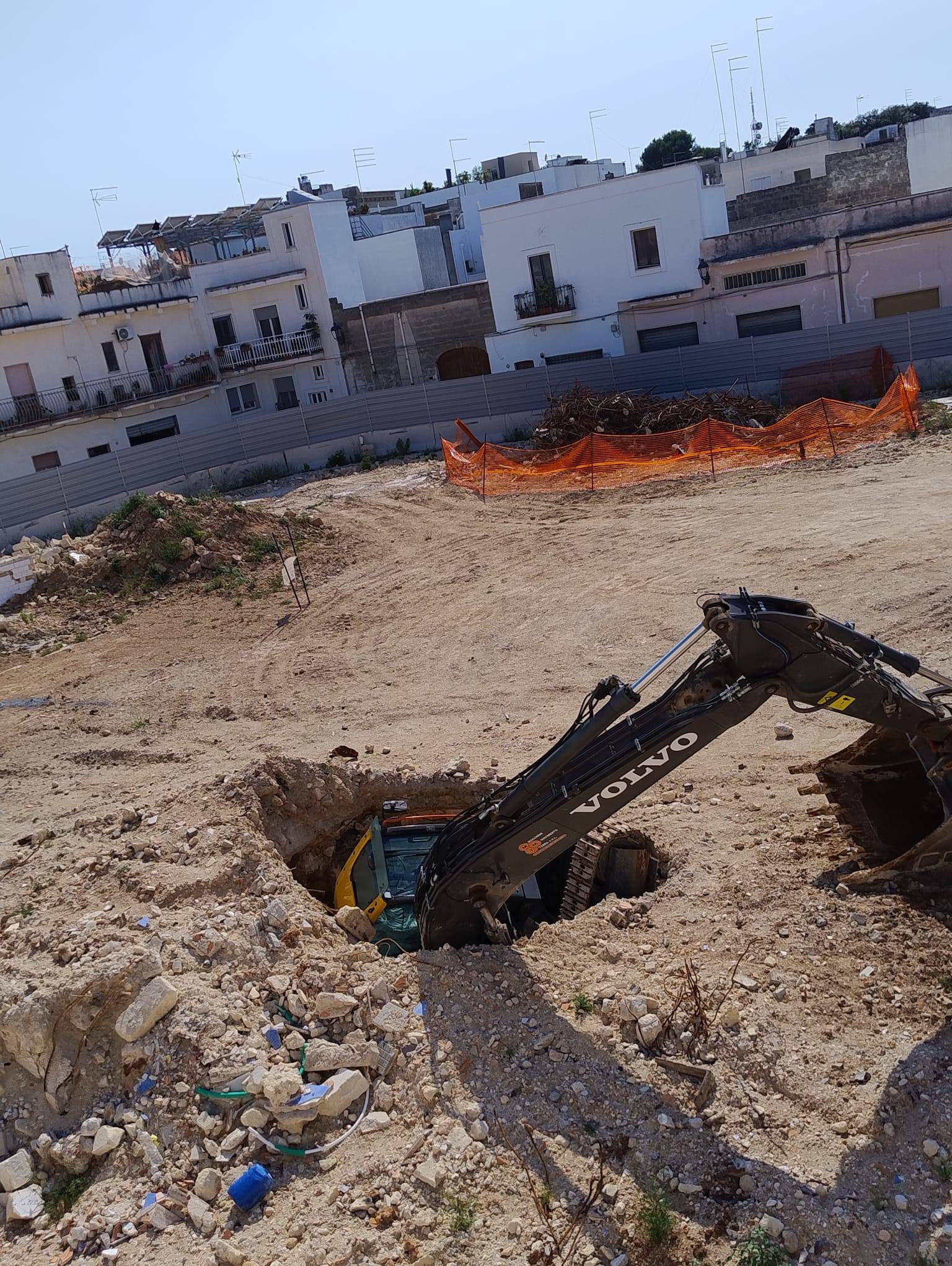 Purtroppo, quello che in tanti immaginavamo (tranne l’Amministrazione), e che nessuno credeva possibile, è successo. Un mezzo meccanico è stato quasi completamente inghiottito da un’improvvisa voragine apertasi sulla superficie rocciosa del cantiere della “Piazza Coperta”.