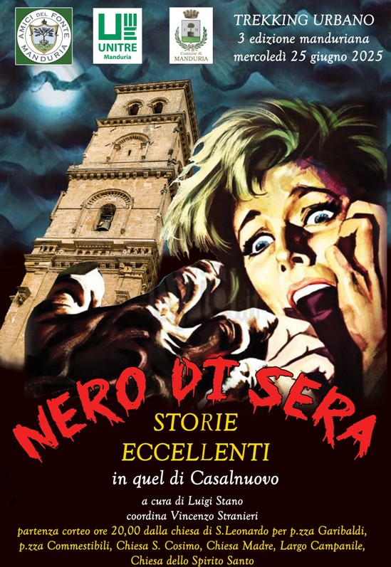 Il trekking urbano, come è noto, non è altro che una passeggiata in città, un modo per scoprire le attrazioni turistiche locali realizzando un momento di crescita sia culturale che spirituale e quest’anno si è voluto inserire nella stessa giornata la 2ª edizione di “Nero di sera – Storie eccellenti in quel di Casalnuovo”.