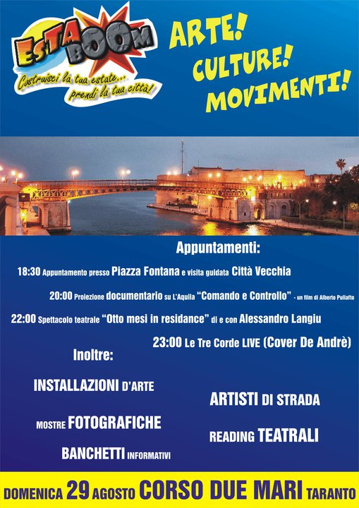 ore 20:00: proiezione di “Comando e controllo” (Festival CineAmbiente 2010), documentario sulla ricostruzione de L’Aquila alla presenza dell’autore, Alberto Pugliafito