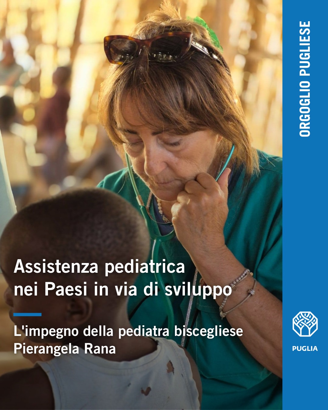 Alla dottoressa Rana, emblema del grande cuore dei pugliesi, giungano i complimenti di Regione Puglia per il lodevole lavoro che unisce medicina, solidarietà e umanità.