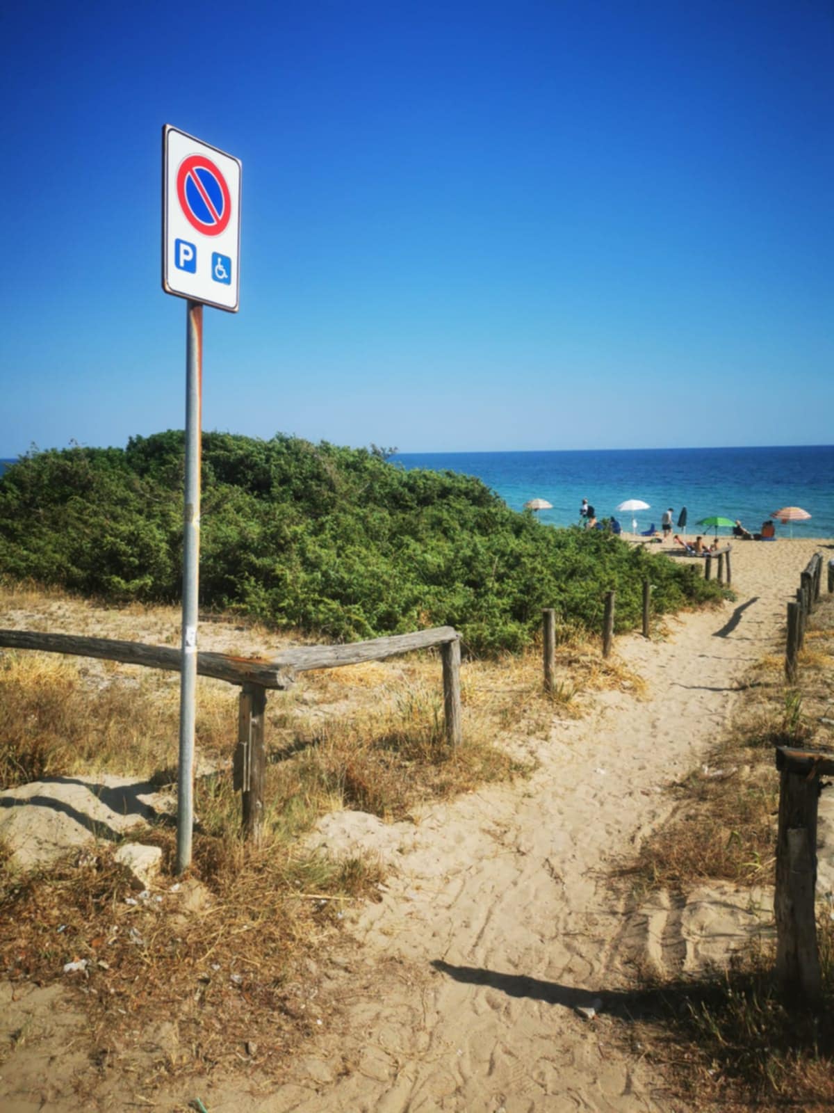 Il video che pubblico insieme a questo scritto rappresenta un parcheggio riservato a persone con disabilità (ormai noti questi parcheggi per le misure fuori da ogni norma e logica) in prossimità di un accesso in spiaggia. È evidente la mancanza di una passerella (che, invece, c’era negli anni passati).