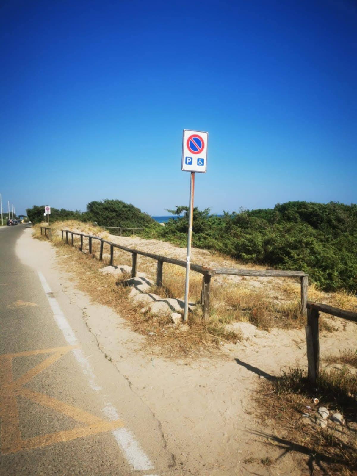 Siamo in località Specchiarica; un normale ingresso in spiaggia. Si può notare che c'è un parcheggio riservato a persone con disabilità (riportato meglio nella seconda foto) ma manca la passerella per accedere in spiaggia.