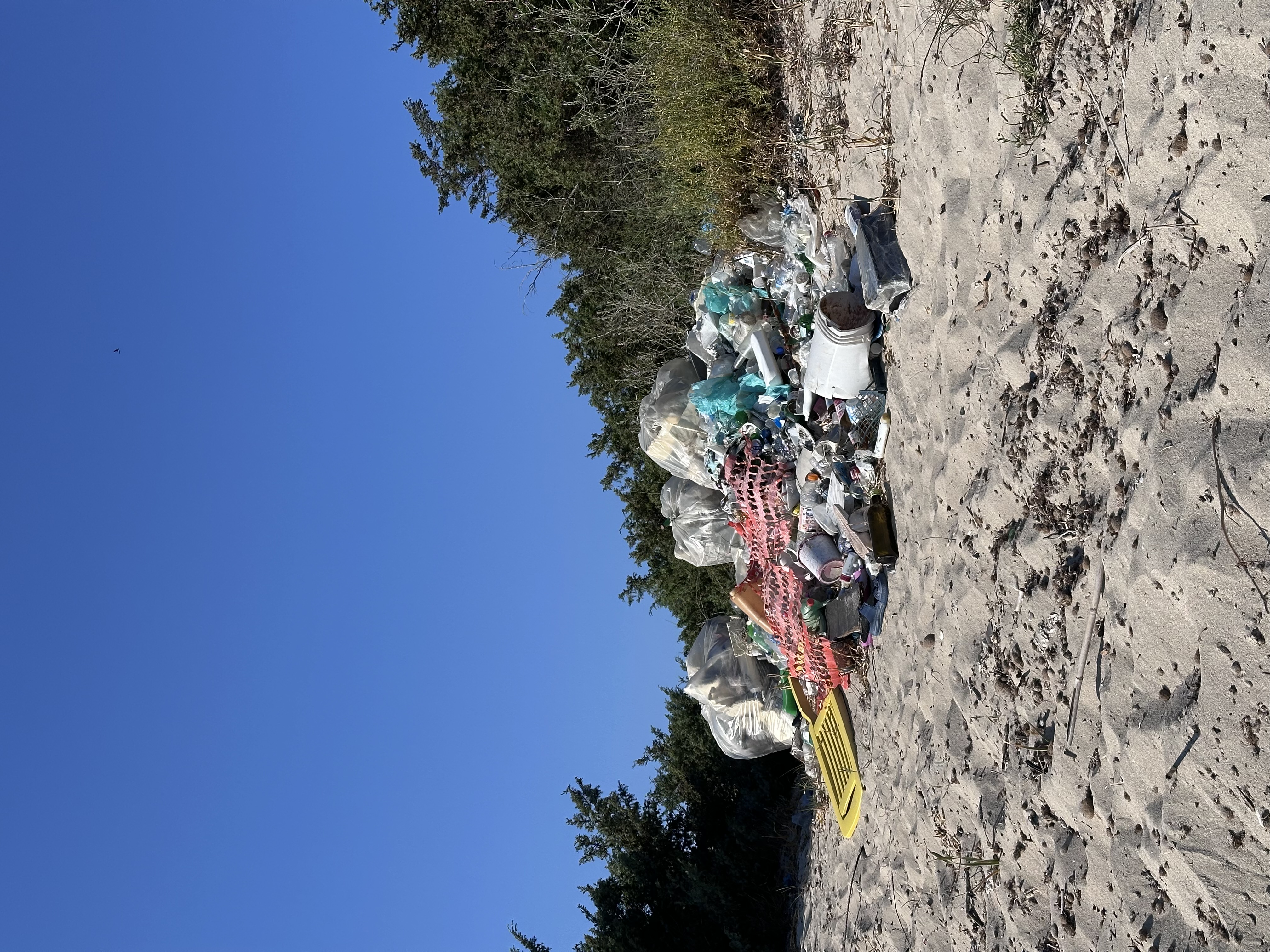 Sulla sabbia, che dovrebbe ospitare solo orme leggere e conchiglie, si mischiano elementi naturali e rifiuti artificiali: plastiche di ogni genere, vetri rotti, sacchetti abbandonati, residui di giornate al mare trasformatesi in detriti permanenti. L’assenza di cestini lungo il percorso,un dettaglio tanto semplice quanto fondamentale, incoraggia comportamenti incivili, in assenza di alternative per lo smaltimento dei rifiuti.