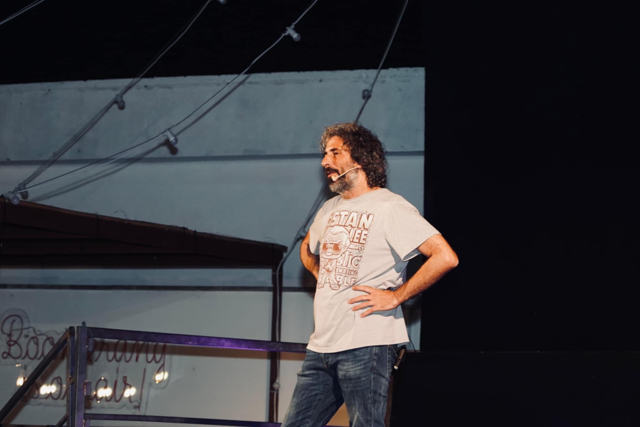 Sotto le stelle del Boomerang, in una magica serata di luglio, l’istrionico cabarettista Alberto Farina si è esibito con lo spettacolo “Non è colpa mia se sono così”. Il comico romano, con la sua aria stralunata, ha raccontato aneddoti surreali della sua vita e della sua paradossale famiglia. Alberto ha fatto rivivere ai presenti le improbabili vicende della sua infanzia e della sua gioventù. Il malfamato quartiere di periferia dove è cresciuto è diventato il palcoscenico fantasioso e delle sue surreali vicende.
