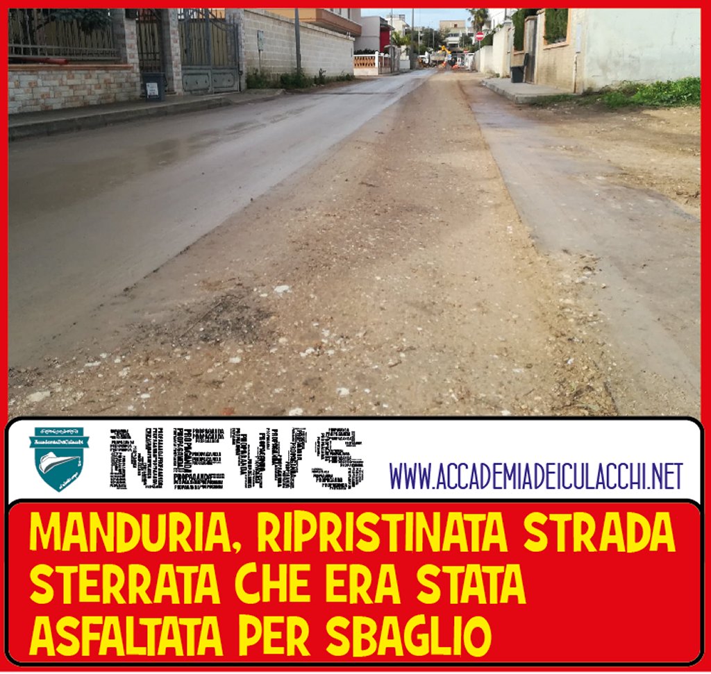 La rivelazione dell’Accademia dei Culacchi: ripristinata a Manduria strada sterrata che era stata asfaltata per sbaglio.