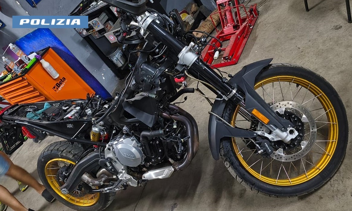 Nel corso del controllo è stato rinvenuto, all’interno di un capannone, la moto rubata parzialmente smontata e priva di targa, sulla quale il titolare dell’officina non sarebbe riuscito a fornire una convincente spiegazione circa la presenza di quel mezzo peraltro cannibalizzato.