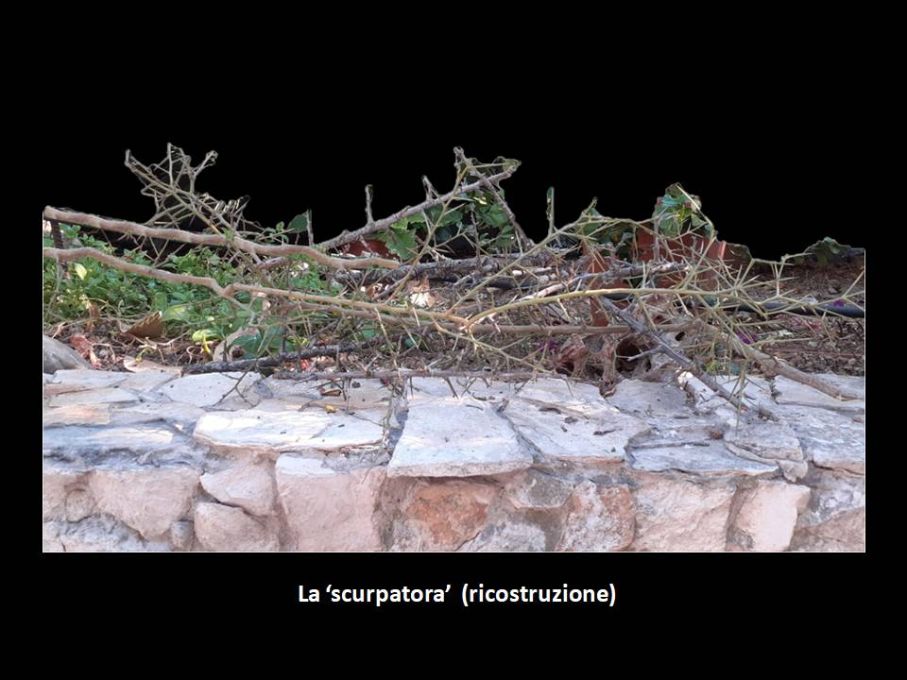 La “scurpatora” è un insieme di ‘scuerpi’ e ‘spinaruti’; la “Mpitratora” indica blocchi di pietre opportunamente disposti dall’artigiano costruttore dei muri a secco