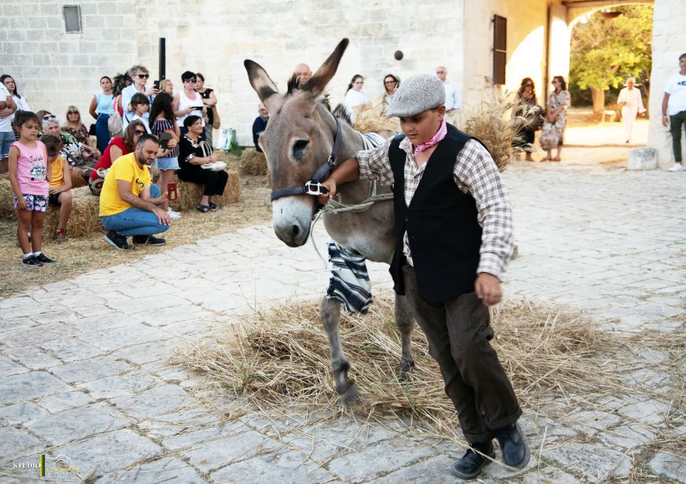 “La raccolta si racconta”: questo il claim della “Festa del grano” che inizierà con una dimostrazione di mietitura all’antica con la falce, mentre risuoneranno antichi canti popolari e le danzatrici della compagnia Areté balleranno la pizzica; tutti i partecipanti, soprattutto i bambini, prenderanno le fascine raccolte, colme di spighe dorate, e le sistemeranno su un carro trainato da un cavallo.