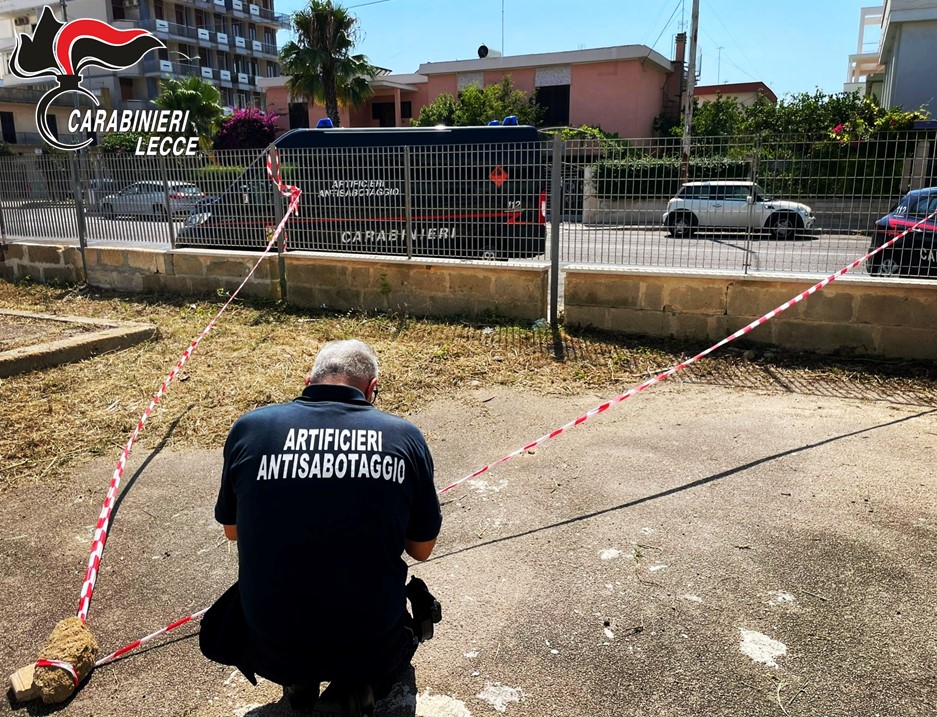 I militari dell’Arma, giunti rapidamente sul posto, hanno immediatamente delimitato l’area e richiesto l’intervento dei colleghi del Nucleo Artificieri Antisabotaggio del Comando Provinciale di Lecce.