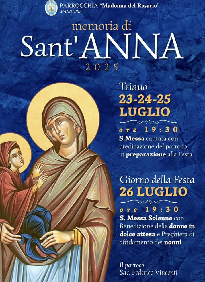 Il 26 luglio i solenni festeggiamenti, con la Messa alle 19,30 che prevede anche la benedizione delle donne in dolce attesa e la preghiera di affidamento dei nonni.