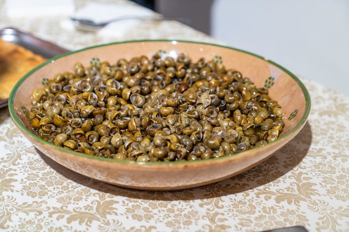 Regina della Festa, la municeddha che può essere gustata soffritta, al sugo o arrostita. E poi tantissimi sfizi della cucina salentina come peperoni ‘a salsa’, melanzane grigliate, peperonata, pittule, polpette, focacce rustiche, e ancora carne alla griglia, ‘pezzetti di carne di cavallo al sugo’, pane di grano con alici e ricotta forte