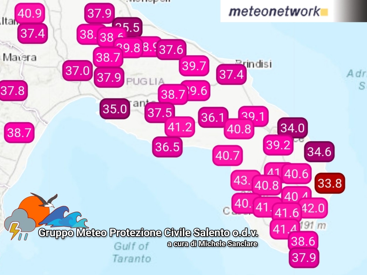 La città di Manduria ha raggiunto rispettivamente i 41.9°C (centro) ed i 41.2°C (periferia), battendo il precedente picco di 41.6°C del 29 luglio 2021.