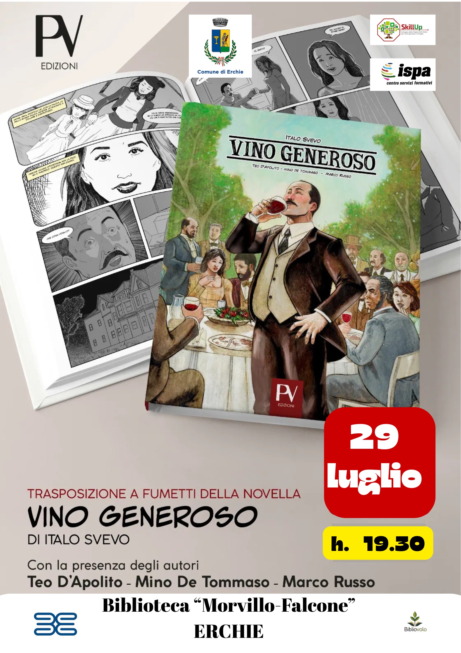 In programma la presentazione della graphic novel tratta da “Vino Generoso”, una delle novelle più celebri di Italo Svevo, occasione unica per riscoprire la sua opera attraverso una nuova forma artistica.