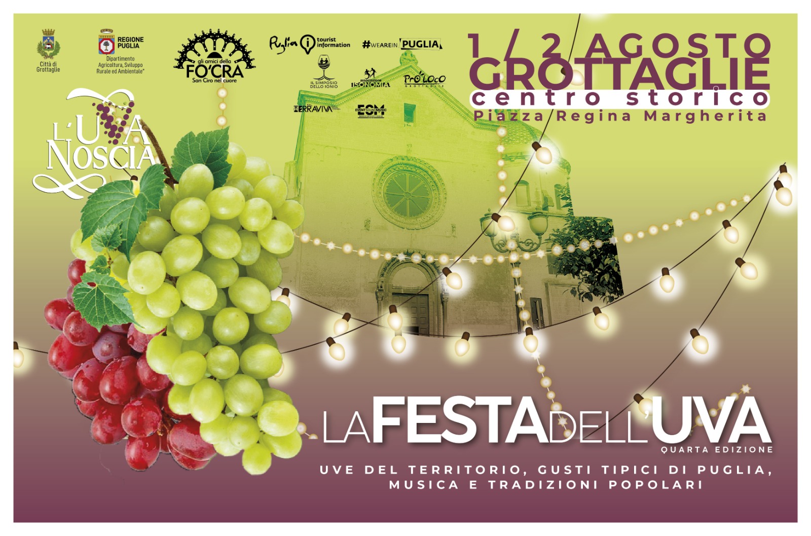 Torna con la sua quarta edizione “L’Uva Noscia”, la grande festa popolare dedicata alla regina delle tavole: l’uva da tavola di Grottaglie. Un evento che unisce sapori, tradizioni e identità nel cuore pulsante del centro storico, tra chianche antiche illuminate da catene di luci e una cornice ricca di musica, artigianato e cultura.