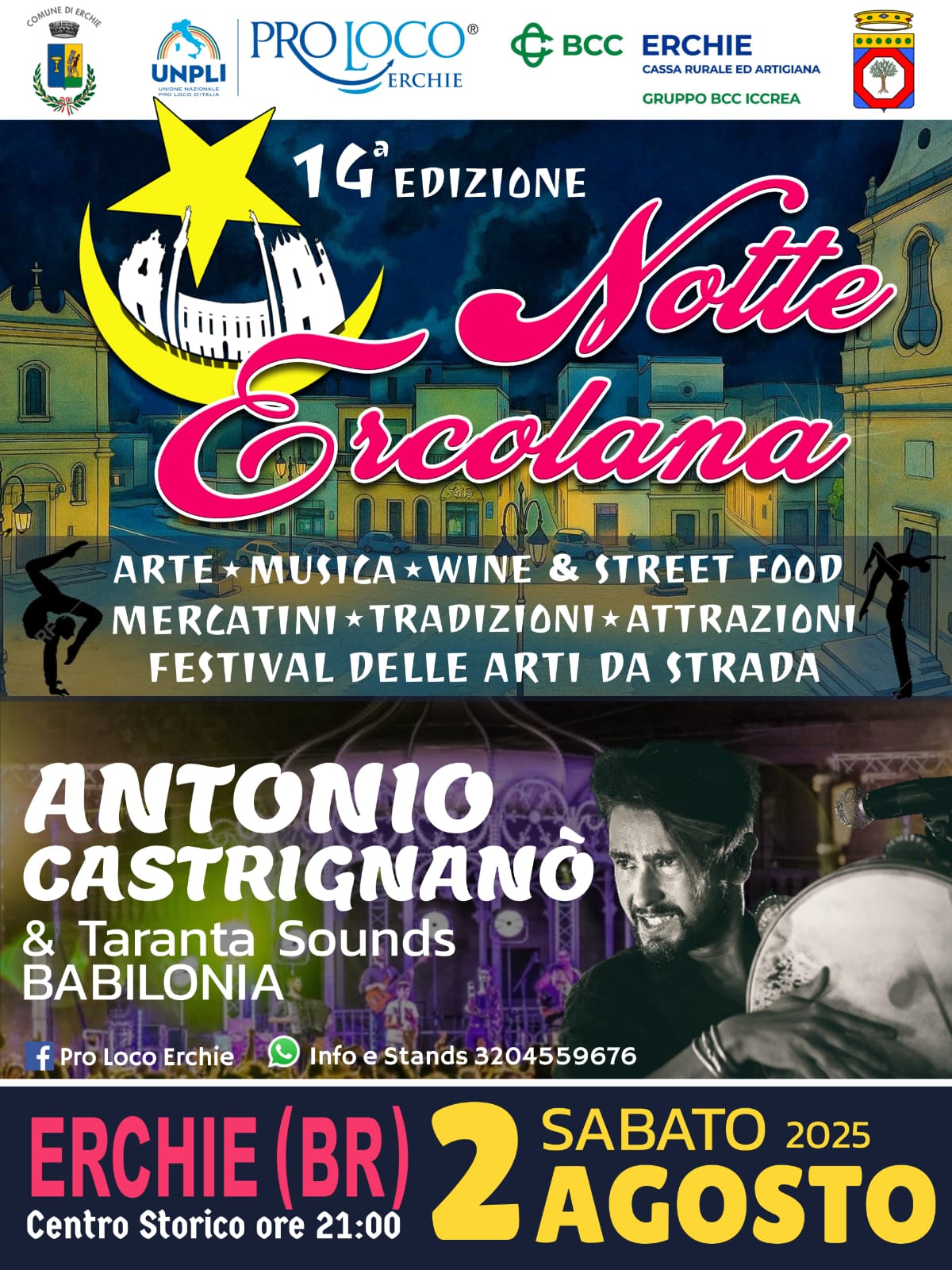 Manca ormai pochissimo. Erchie è pronta a trasformarsi in un palcoscenico a cielo aperto per l'attesissima "Notte Ercolana". Domani, sabato 2 agosto, il cuore del paese pulserà di energia, offrendo a cittadini e visitatori un'esperienza indimenticabile che intreccia tradizione, spettacolo e gusto. Un evento che promette di coinvolgere tutti i sensi, in una serata magica dove ogni angolo del centro storico racconterà una storia.