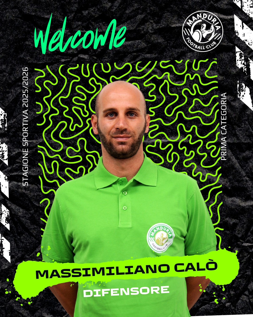 Massimiliano Calò, difensore manduriano doc classe ’91, si unisce alla squadra dopo il trionfo in Coppa Puglia con il Don Bosco. Cuore, grinta e appartenenza.