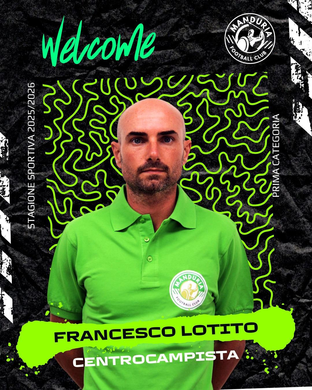 Francesco Lotito, centrocampista classe ’94, arriva dal Sava dopo una stagione da protagonista. Cresciuto nel vivaio del Lecce, con esperienze importanti a Brindisi, porta visione di gioco e solidità.