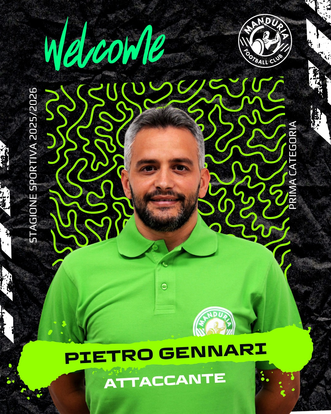 Piero Gennari, talento manduriano classe ’91, rientra in biancoverde dopo l’esperienza con la Don Bosco. Estro, fantasia, fiuto del gol e un senso di appartenenza che non si insegna.