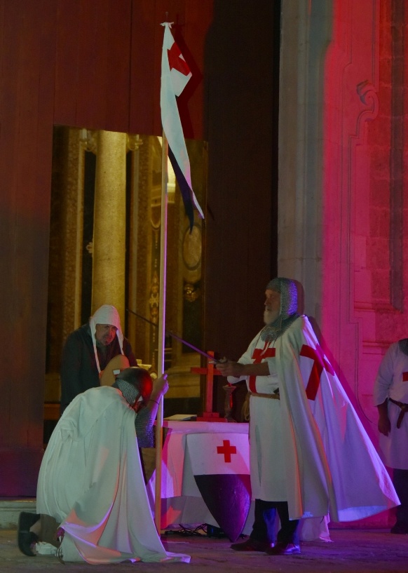 La cerimonia ripercorre i passaggi chiave dell’ammissione di un cavaliere: la preparazione, il giuramento di fedeltà e servizio, la benedizione delle armi, la vestizione e la consegna degli emblemi templari. Il racconto scenico pone l’accento sui valori di disciplina, carità e tutela dei pellegrini, cardini della tradizione templare, restituendo al pubblico il senso di una scelta totale di vita e di missione. Nati come confraternita a sostegno dei viandanti sulle vie di Terrasanta, i Templari unirono spiritualità e funzione militare in un’organizzazione che segnò l’immaginario medievale europeo.
