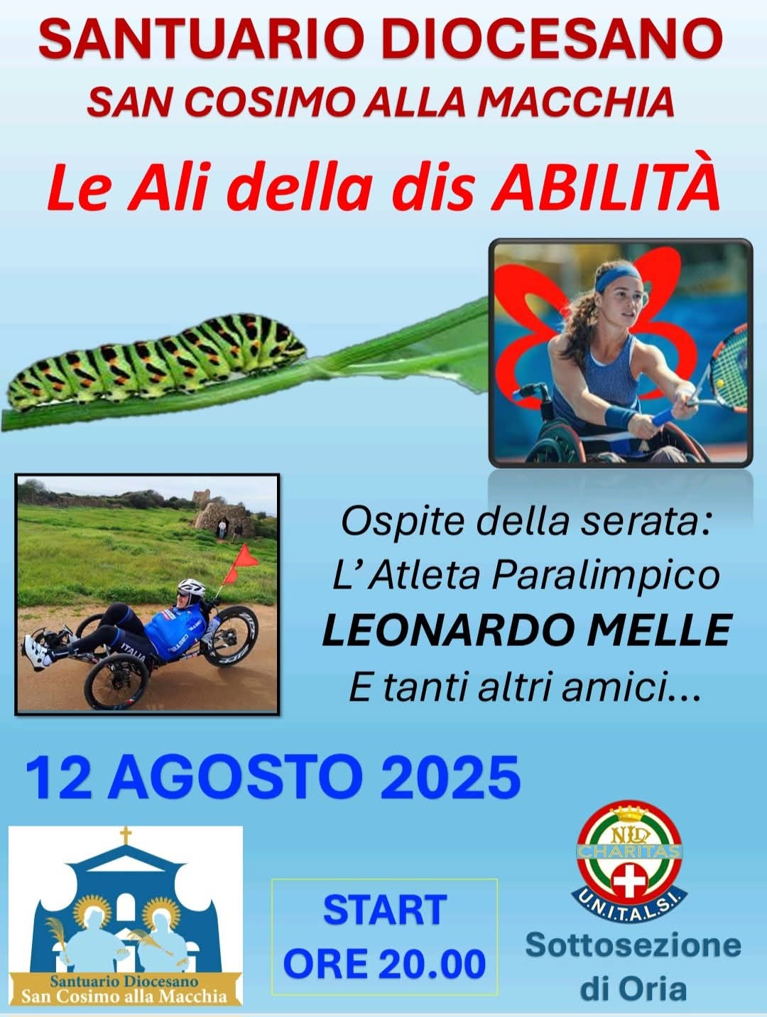 E’ il tema di una serata promossa dalla sottosezione di Oria di Unitalsi. Si terrà martedì 12 agosto, a partire dalle ore 20.