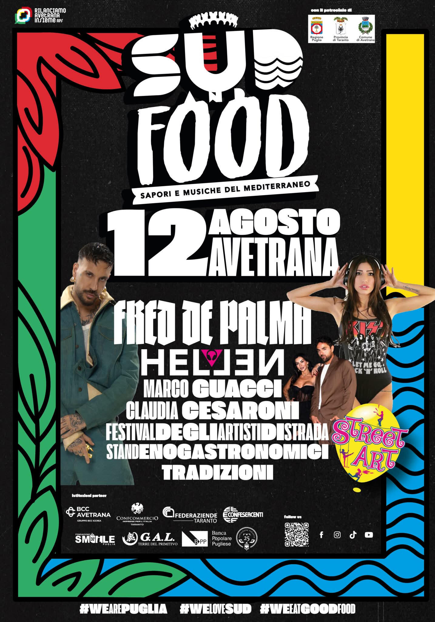 Martedì sera, a partire dalle 21, ritorna Sud and Food: stand gastronomici, buon vino, artisti di strada, mercatini di artigianato e il concerto di Fred De Palma.