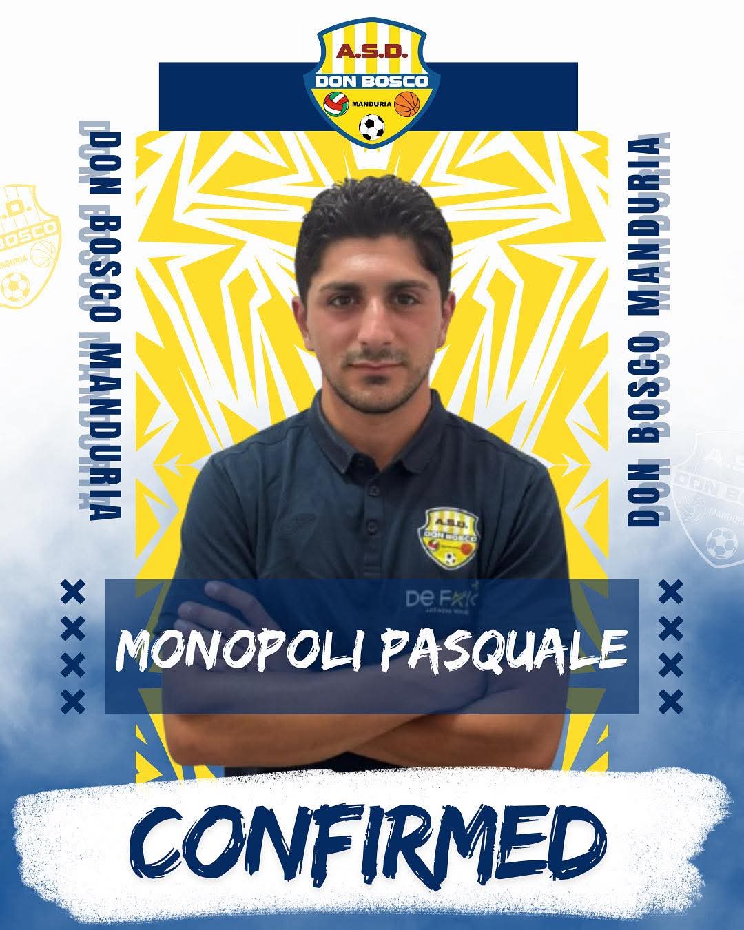 La Don Bosco Manduria annuncia la conferma di Pasquale Monopoli, centrocampista classe ’98, protagonista anche nella prossima stagione.