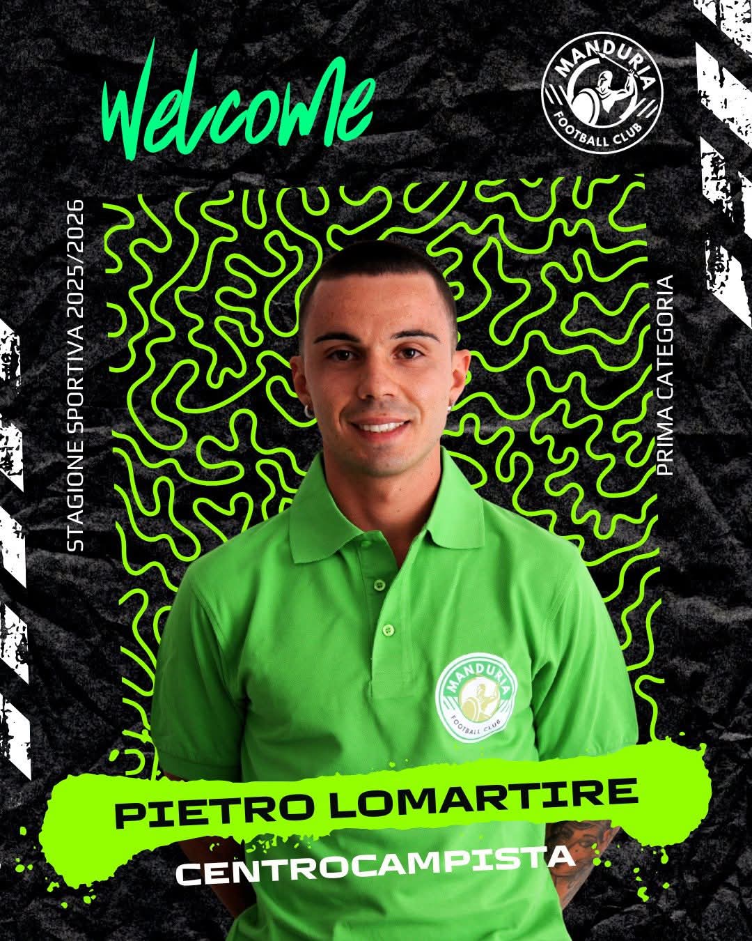 Pietro Lomartire, classe 2001, è un nuovo calciatore del Football Club Manduria. Nativo di Torricella, il neo biancoverde, grazie al suo eclettismo, può ricoprire tutti i ruoli di centrocampo e all’occorrenza sa disimpengnarsi anche come esterno difensivo. A dispetto della giovane età, Lomartire vanta già importanti esperienze, avendo militato in Eccellenza nella Virtus Francavilla, Avetrana, Locri e San Luca in Calabria in Serie D, in Eccellenza ad Alba.