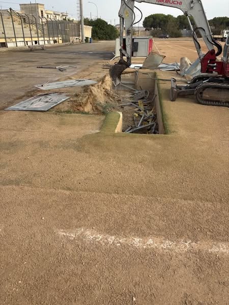 Vigilia di Ferragosto al lavoro nel cantiere del campo di calcio “Celestino Laserra”, che sarà interessato da lavori di ammodernamento e ristrutturazione.