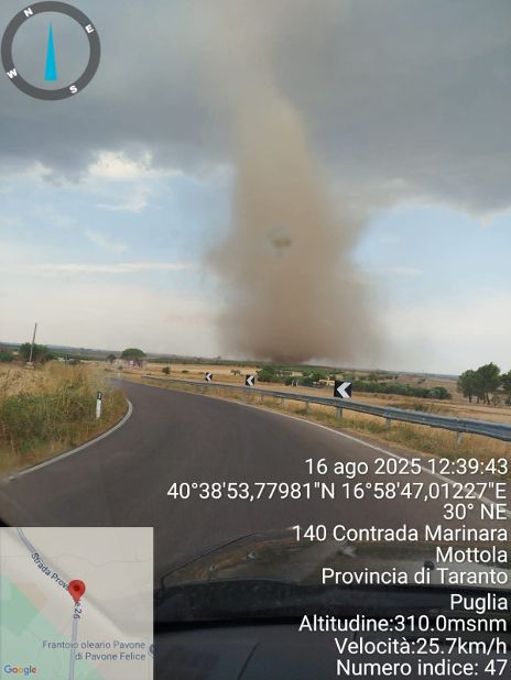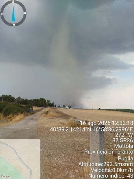 Ieri il maltempo ha colpito violentemente l’area occidentale della provincia di Taranto: un tornado si è abbattuto in contrada Marinara a Mottola, danneggiando le colture.