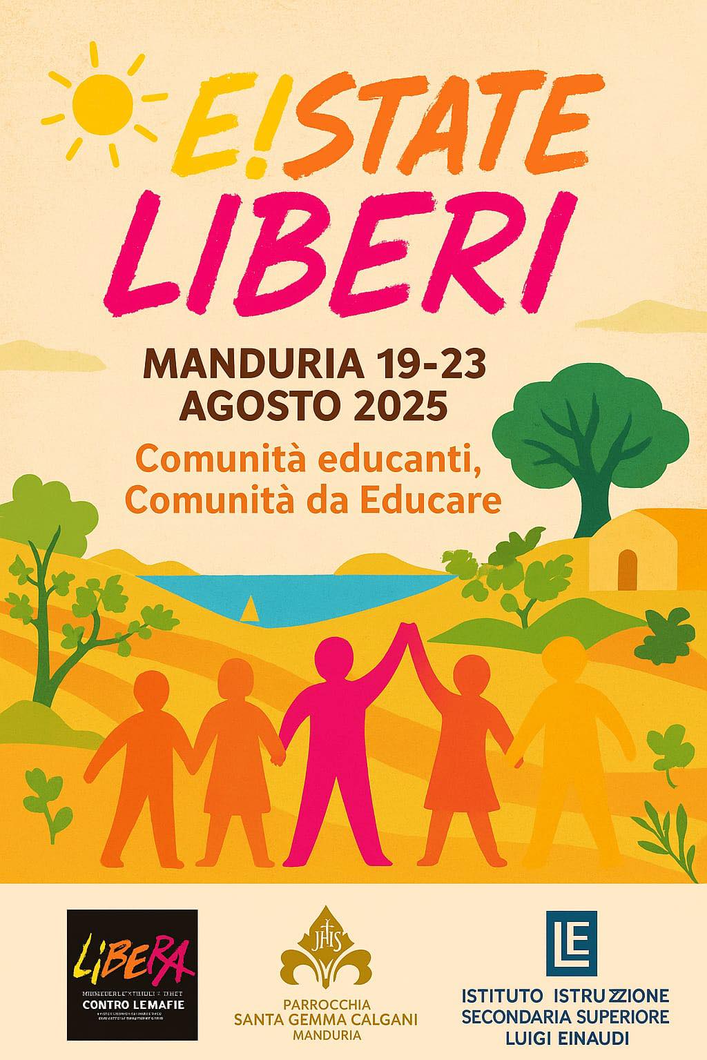 Cinque giornate, dal 19 al 23 agosto, dedicate all’impegno, alla formazione e alla cittadinanza attiva, con il tema centrale: “Comunità educanti, Comunità da educare”. Il campo coinvolge giovani provenienti da diverse realtà, chiamati a riflettere e agire in prima persona nei luoghi simbolo del riscatto sociale e dell’antimafia. Attraverso laboratori, incontri con testimoni, attività di gruppo e momenti di condivisione, “E!State Liberi” vuole rafforzare il senso di comunità e la responsabilità collettiva, partendo dai territori. L’appuntamento rappresenta un’occasione concreta per riscoprire il valore dell’educazione alla legalità come impegno quotidiano e come seme di futuro.