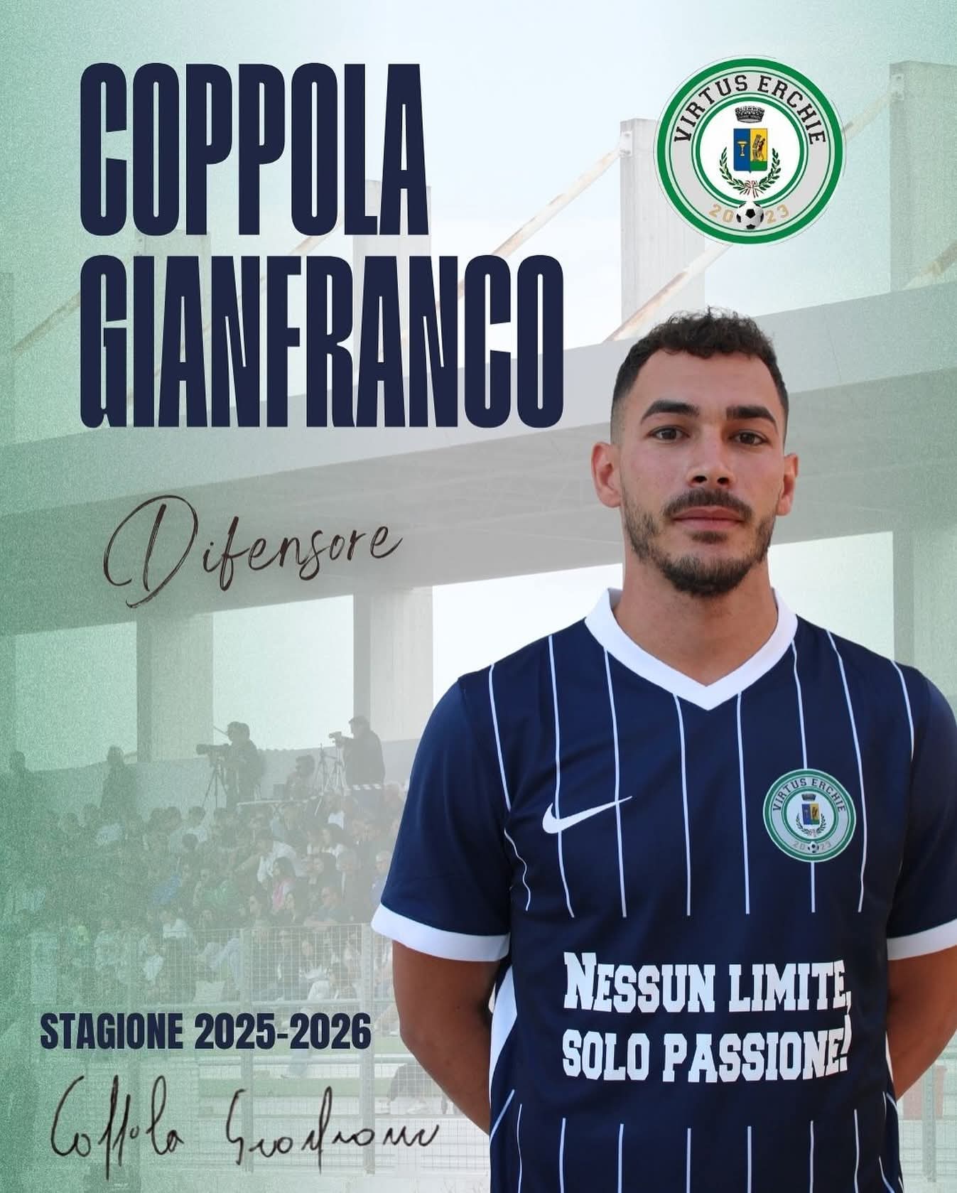 Per il terzo anno consecutivo, la ASD Virtus Erchie potrà contare su Gianfranco Coppola, difensore grigioverde anche nella stagione 2025/26.