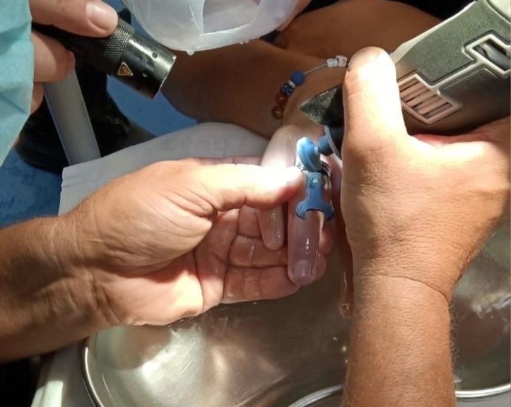 L’anello si era incastrato, bloccandogli la circolazione. I vigili del fuoco hanno utilizzato uno strumento di precisione per tagliare l’anello e liberare il dito del malcapitato.
